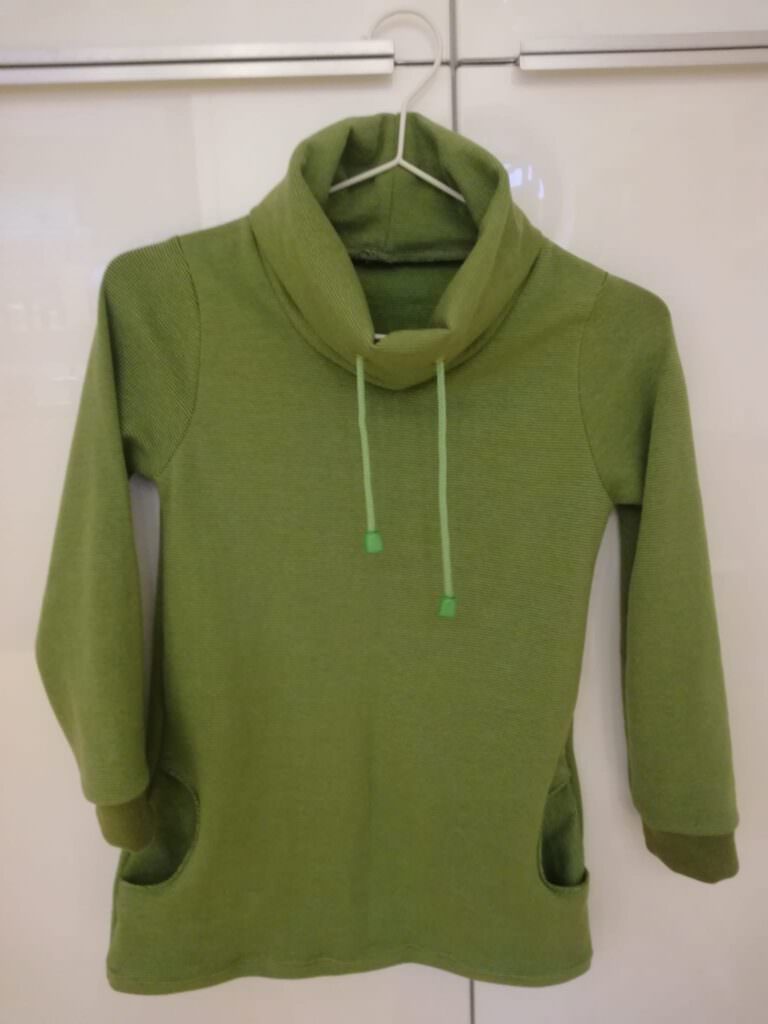 Das selbe nochmal in "grün"...der Stoff läuft zwar unter Bündchenware, ist aber für absolut geeignet für Nähprojekte, für die man etwas schwereres Jersey bevorzugt.