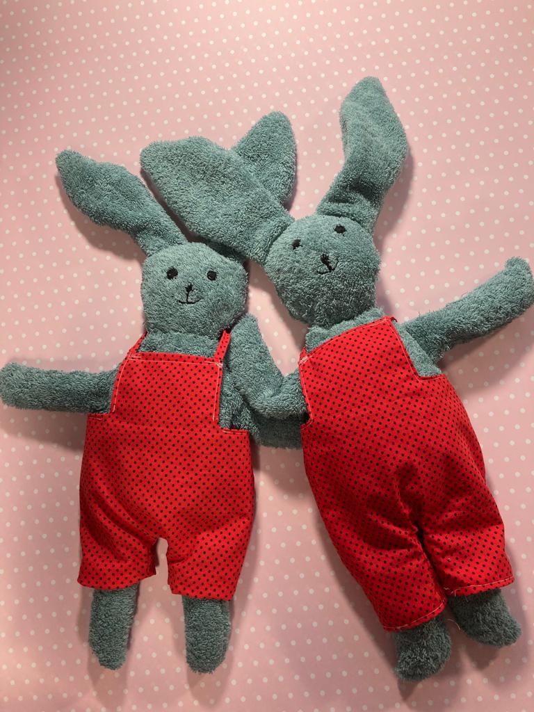 Eine ganze Hasenfamilie ist hier in Monis Werkstatt entstanden, nachdem wir den ersten im Nähkurs genäht hatten...alle Enkel sind versorgt!