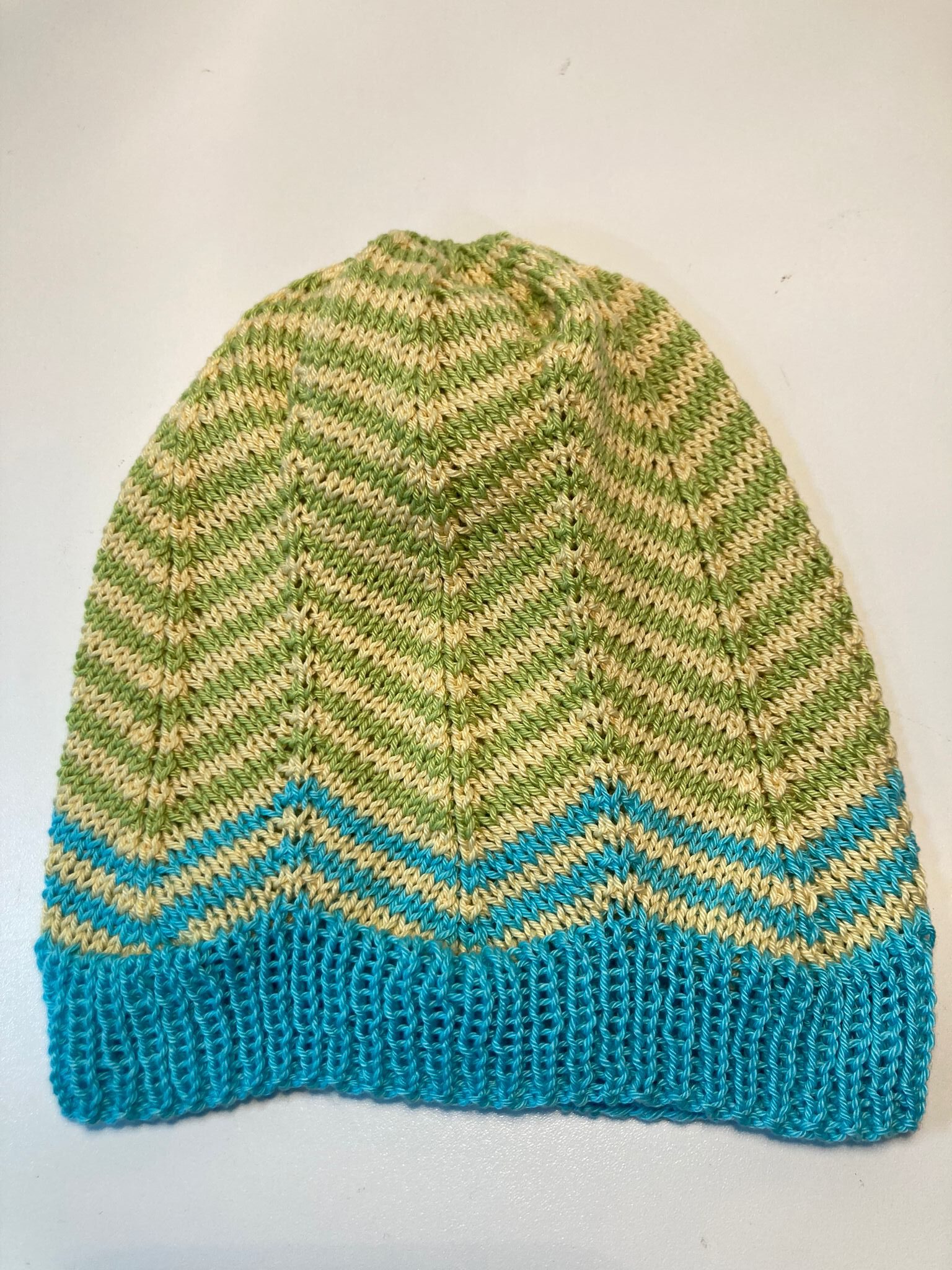 Baumwollmütze „Jette“ ist handgestrickt aus feiner Baumwolle.