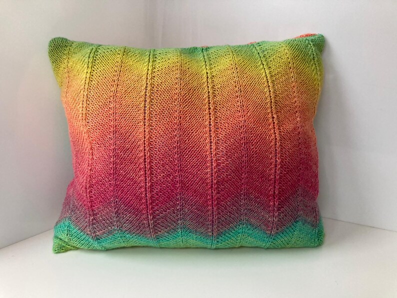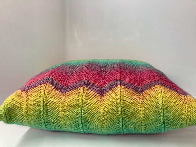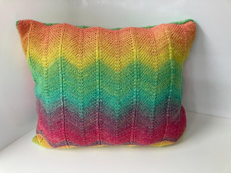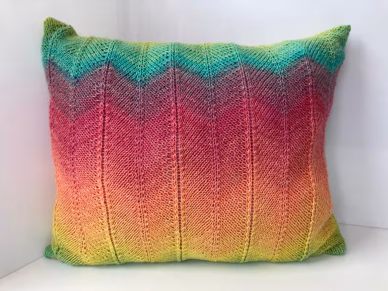 Handgestricktes Kissen aus Wolle, Regenbogen